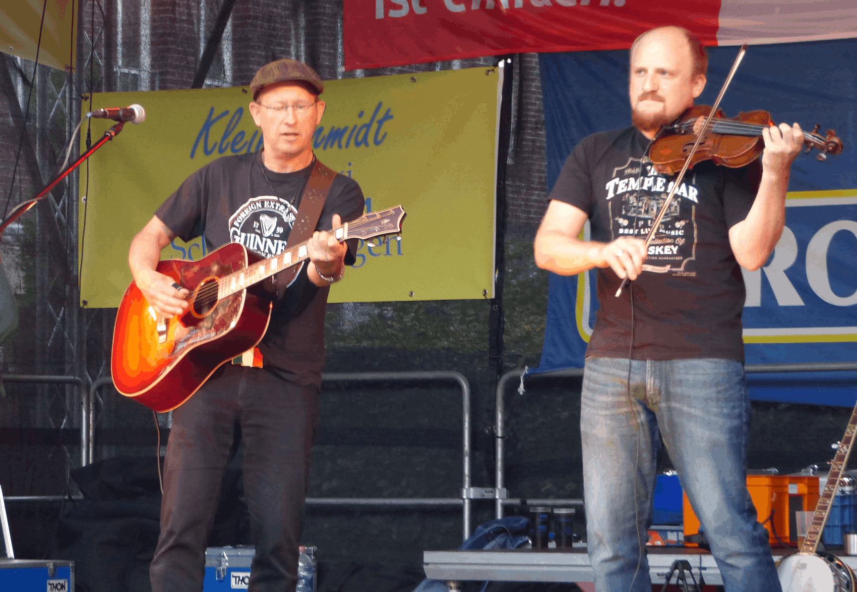 Mit Michaels irisch geprägter Baritonstimme, seiner zugkräftigen Rhythmusgitarre, dem Banjo im Oldtimestil und Christians gekonntem Geigenstrich heizen die beiden Musiker ihrem Publikum ordentlich ein – alles getreu dem Motto: Party like the Irish – Feiert mit uns!